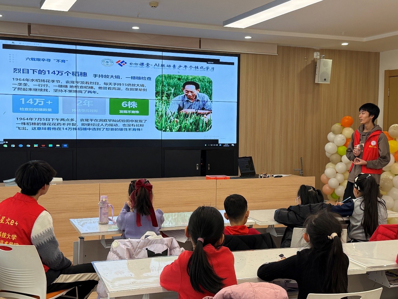 近日,伟德victor1946网站青衿志愿服务协会社会实践队前往青岛市崂山区东城国际社区开展“e心课堂”系列活动。实践队通过科学家精神宣讲、机器人体验和AI伴学体验,为社区青少年赋能。