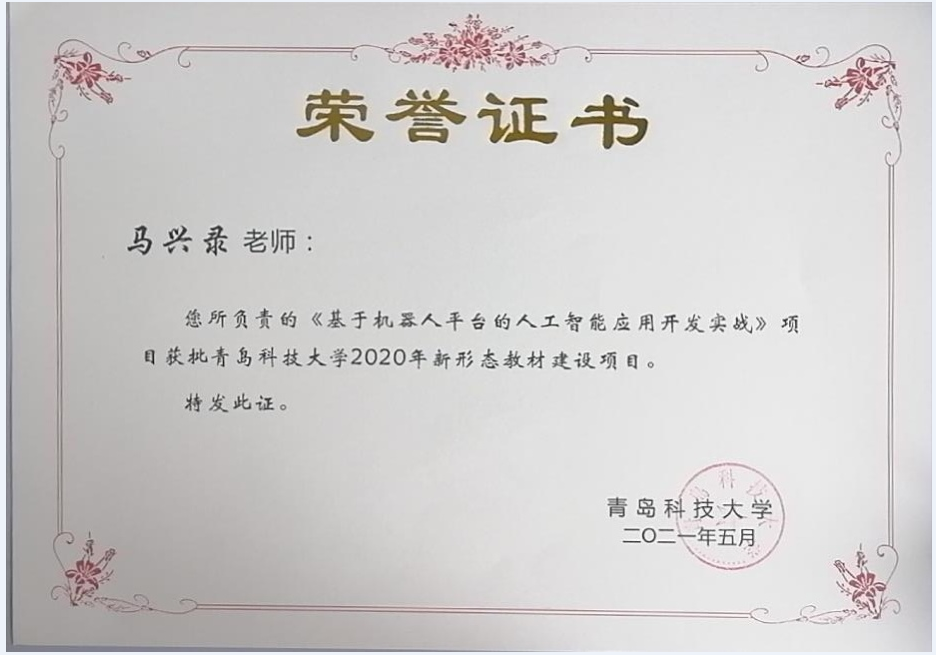 9、伟德victor1946网站新形态教材建设项目--基于机器人教学平台的人工智能应用开发实战